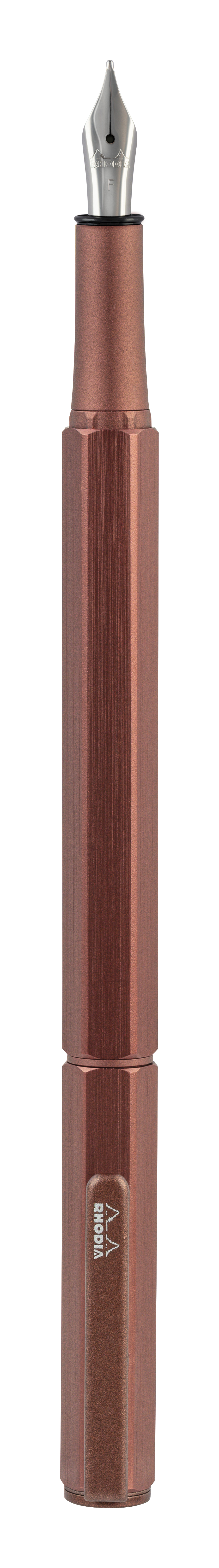 Geprägte Iridium-Feder (Rhodia-Logo und Federstärke), hergestellt in Deutschland, Lieferung mit langem Universal-Tintenkonverter.