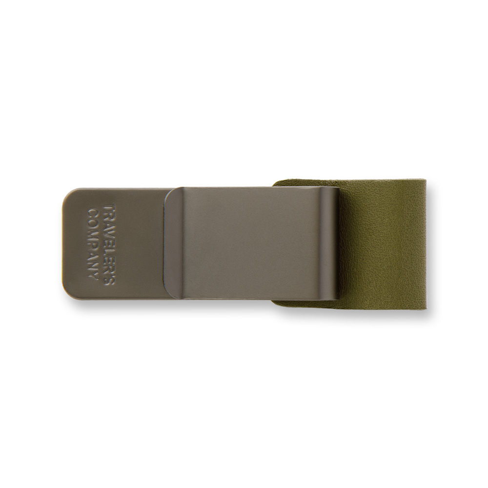 Der 016. Penhalter von TRAVELER'S Notebook ist ein Clip-Halter, der einen Lederriemen besitzt, der die Kappe deiner Stifte hält, und einen gunmetal Clip, der am Cover des TRAVELER'S Notebook angebracht wird. Für diese Größe können Stifte bis zu einem Durchmesser von 12 mm in den Halter eingesetzt werden. Geeignet sowohl für reguläre als auch für Passport-Größe des TRAVELER'S Notebook.