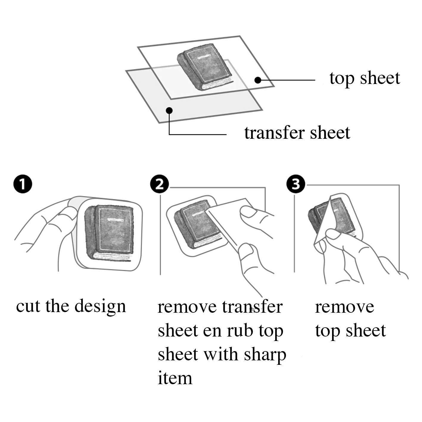 Eine Beschreifung für die Verwendung der Transfer Sticker ist auf der Rückseite der Verpackung