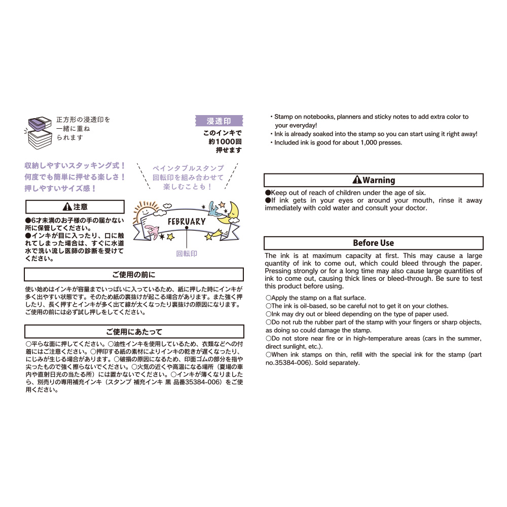 Der Stempel hat die Abmessung 5.5 x 2.3cm und wir in einer Aufbewahrungsbox geliefert.