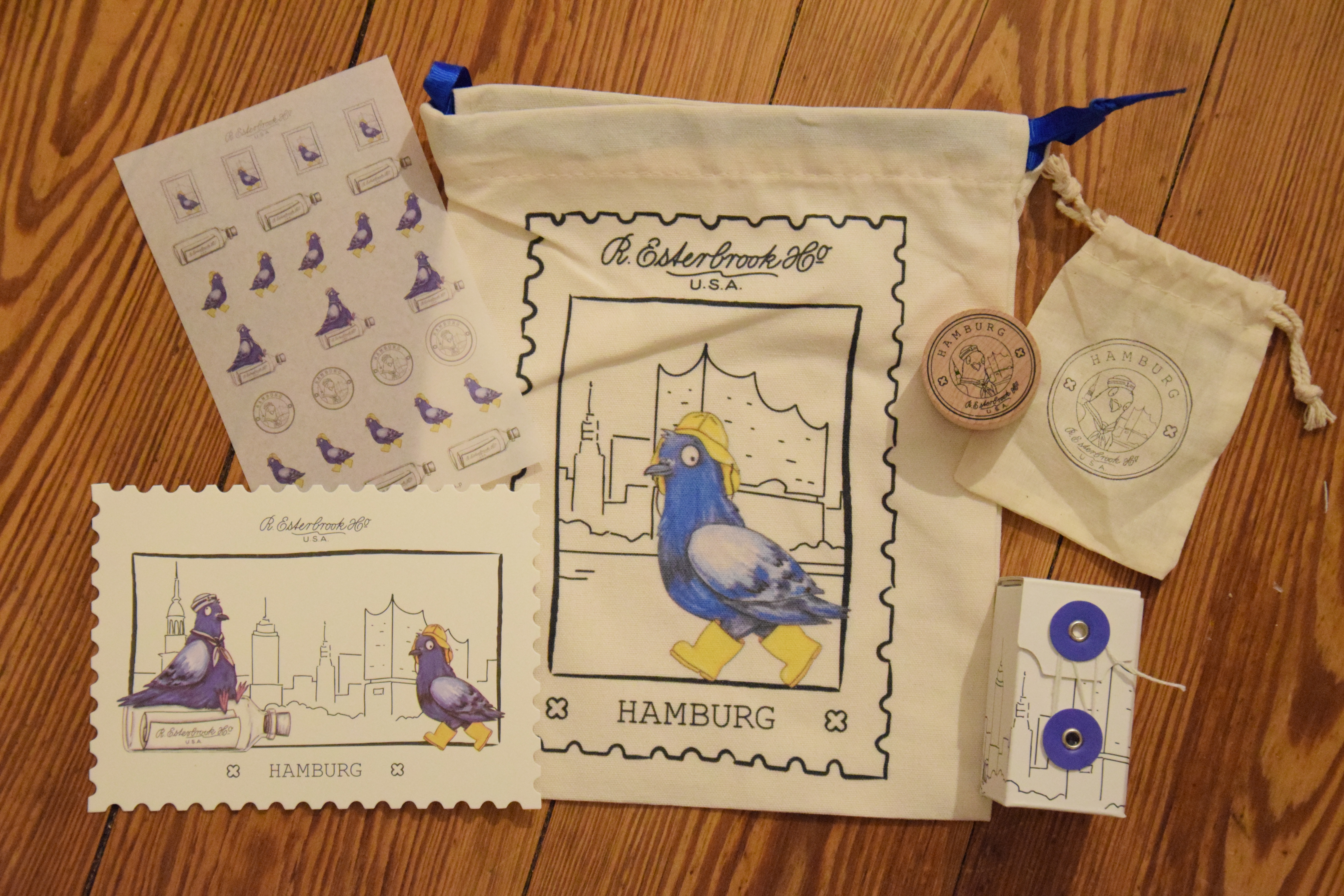 Die berühmte Taube der NY Pen Show hat es auch nach Hamburg geschafft. Dieses exclusive Set besteht aus Postkarte, Washi-Stickern, Stempel und Pigeon Poop Tinte.