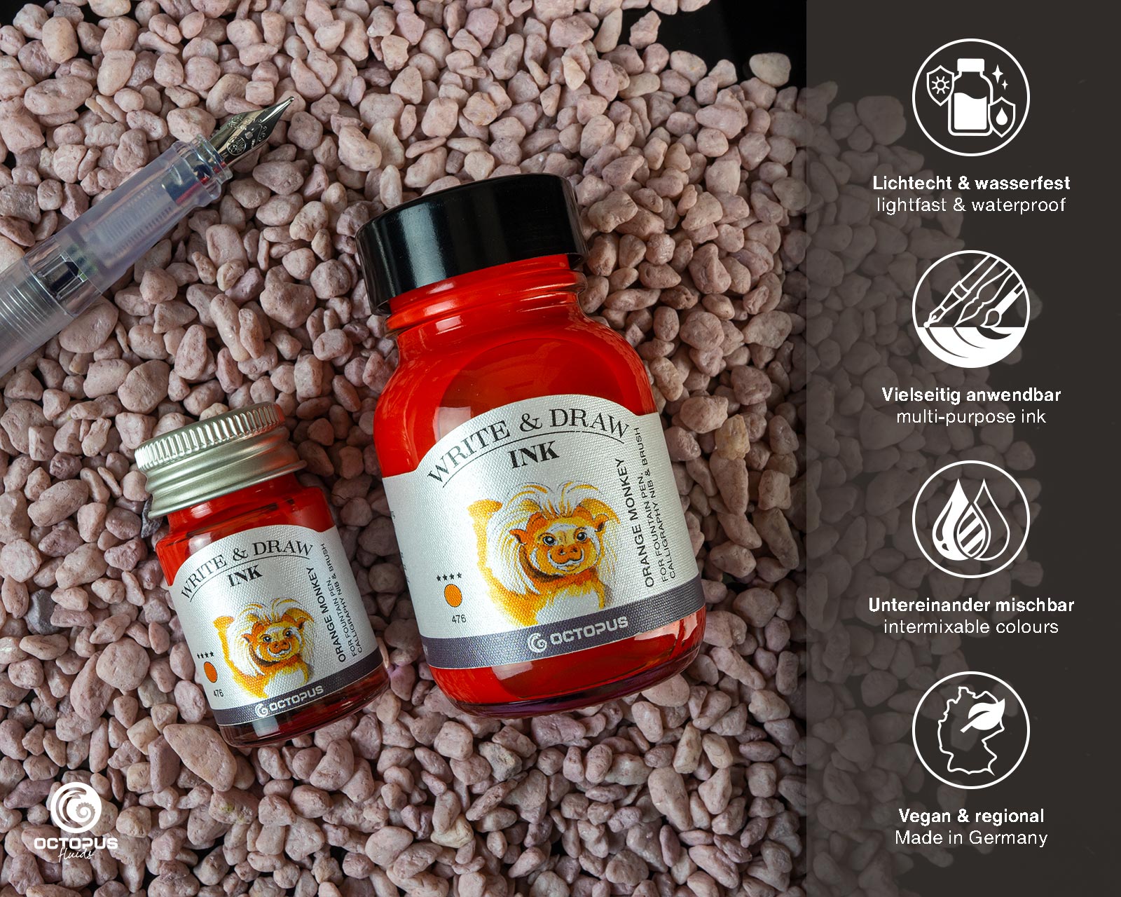 Die Octopus Write & Draw Tinten sind die perfekte Ergänzung für alle Kreativen und Schreibbegeisterten. Mit einer Auswahl von lebendigen Farben können Sie Ihre Ideen zum Leben erwecken und Ihrer Kreativität freien Lauf lassen. Die Tinten sind von hoher Qualität, lichtecht und wasserfest, so dass Ihre Kunstwerke lange halten. Egal, ob Sie zeichnen, schreiben oder kalligrafieren - mit dem Octopus Write & Draw Tinten haben Sie alles, was Sie brauchen, um Ihre Werke zu vervollkommnen. Holen Sie sich jetzt Ihr Tinten als Flaschen oder Proben und lassen Sie Ihrer Fantasie freien Lauf!