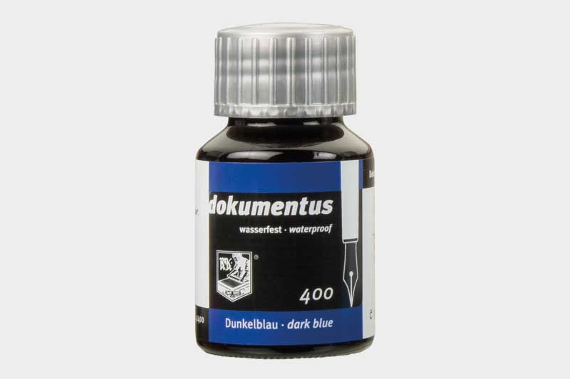 Dokumentus is the world’s first fountain pen ink conforming to the resistance requirements of DIN ISO 12757-2. It has been tested by the „Papiertechnische Stiftung Heidenau“ (Paper Technology Foundation in Heidenau), an independent standards body which has certified that this ink can be used by registrars for official documents.
