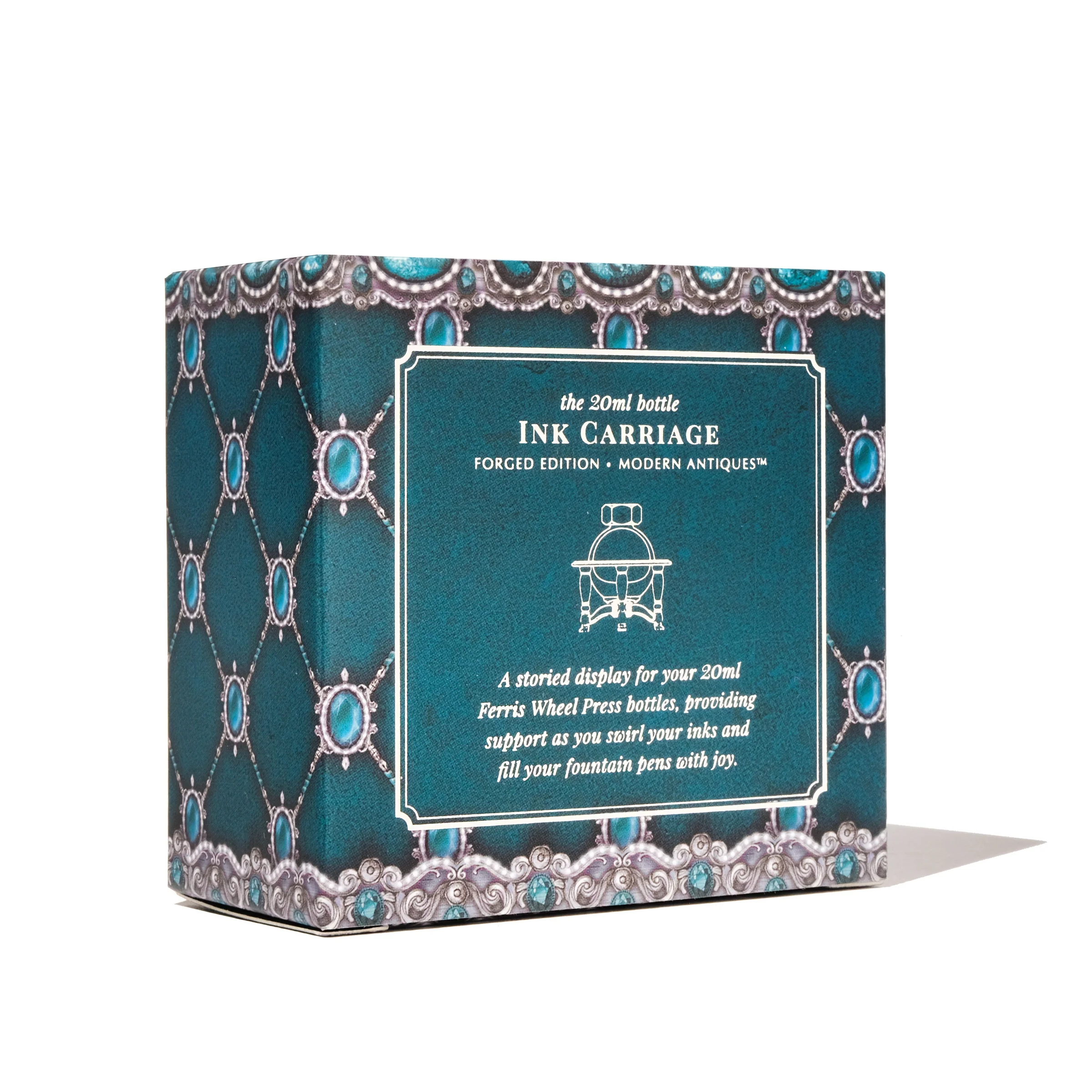 Enchantment awaits with the all-new 20ml Ink Carriage. A storied display for your most treasured bottles of Ferritales ink. Providing support while you swirl your inks and fill your fountain pens with joy. In a rugged matt iron finish, transform any 20ml Ferris Wheel Press bottle into a carnival classic and bring inspiration to your deskscape.
