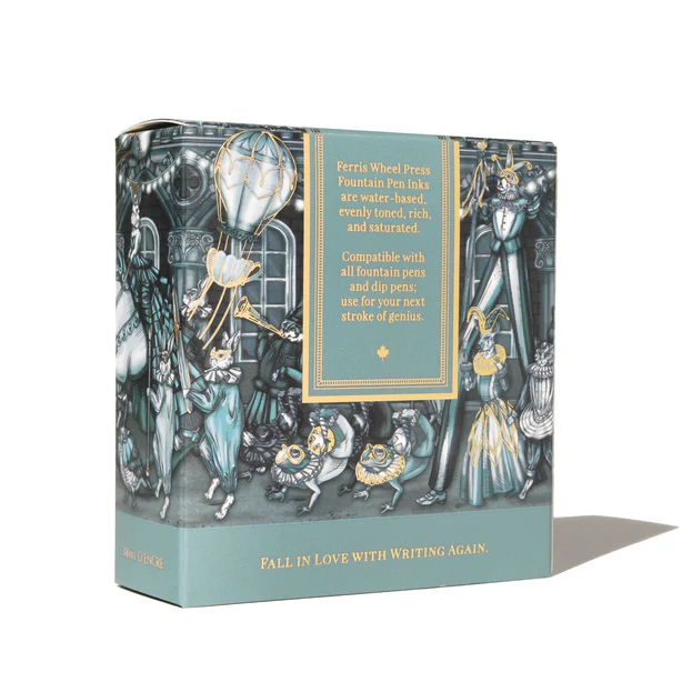 Join an elaborate parade filled with dazzling floats and mesmerising performers, jesters and acrobats sprinkle whimsy and wonder throughout the splendid spectacle. Draped in opulent carnival attire, immerse yourself in the pageantry, captivated by the enchanting revelry and the dazzling performances that fill the air. Allow this enchanting experience to kindle the spark of inspiration within you, beckoning you to infuse a touch of that very magic into your own tales with the exquisite depths of this grey-blue ink.
