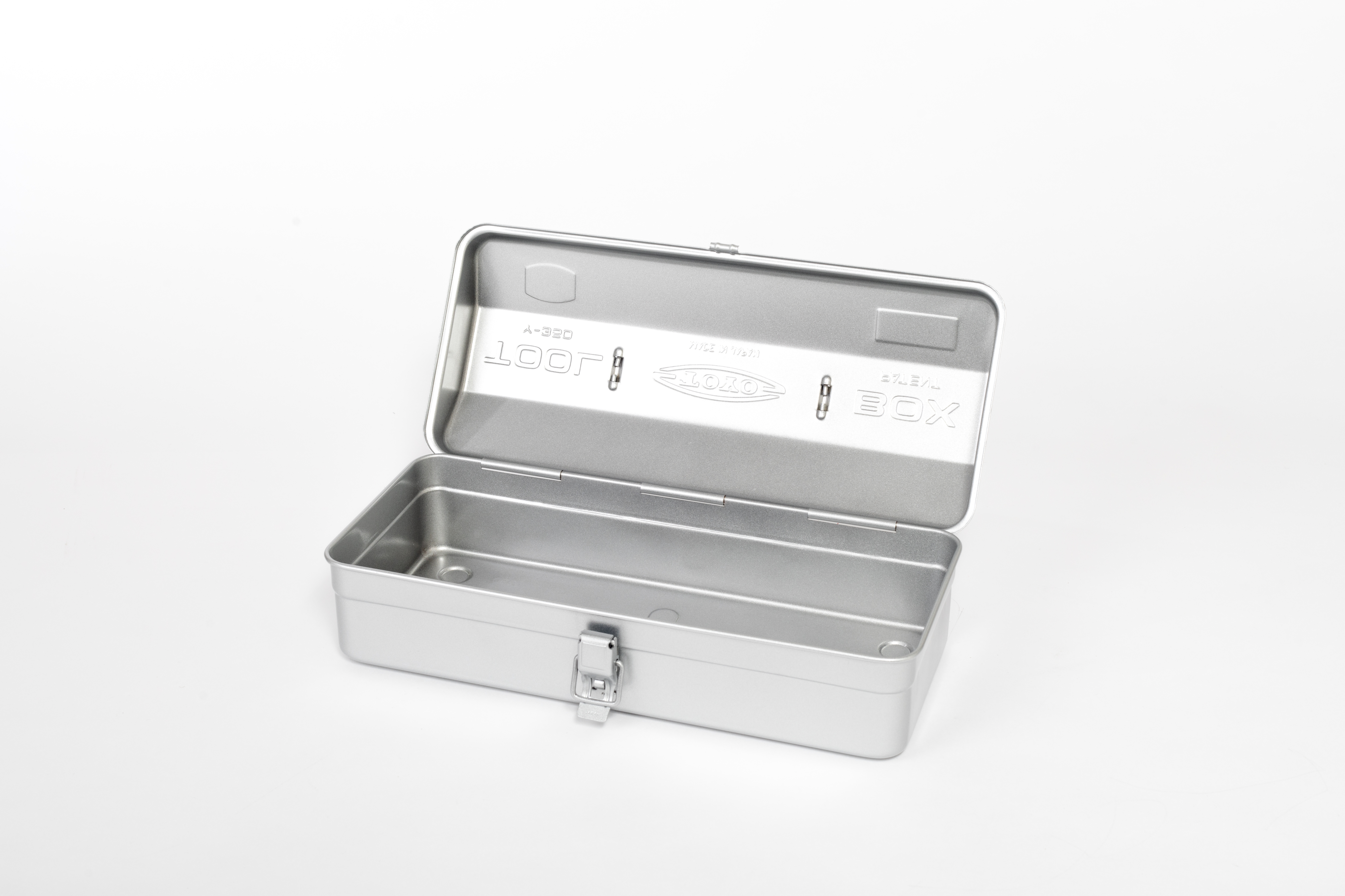 Die Toyo Steel Toolboxen zeichnen sich durch eine nahtlose Stahlplatte, Langlebigkeit und Design aus. Die in Japan hergestellten Boxen sind in verschiedenen größen und Formen erhältlich. Perfekt für die Aufbewahrung aller Schreibutensilien und Zubehör sowie anderer Schätze.