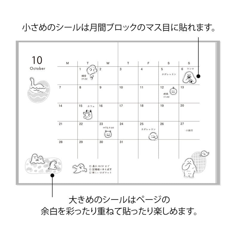 Du erhälst zwei Sticker Bögen. Auf der ersten Seite sind diverse Monster. Die zweite Seite enthält diverse Sticker für den Hintergrund oder verzierungen für deinen Kalender, Journal oder Briefe.